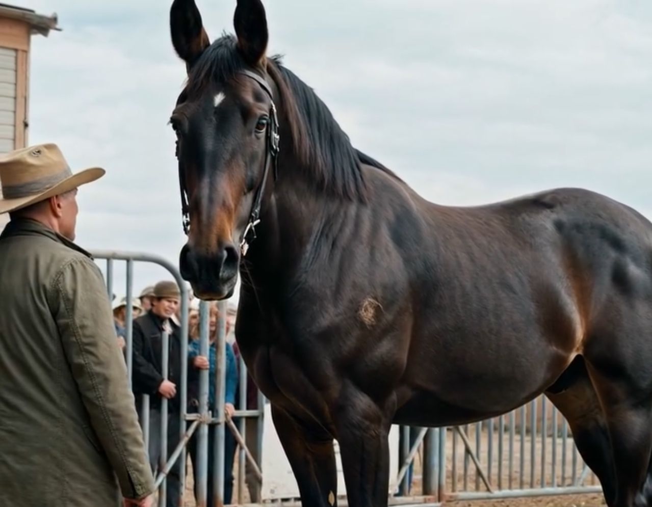 He struck the rail once with the front of his hoof. The entire pen shuddered. The metallic clang rang out across the yard like a bell announcing bad news. Men who had always stood a little too close to fences stepped back without speaking, their boots scuffing the gravel in unconscious retreat.