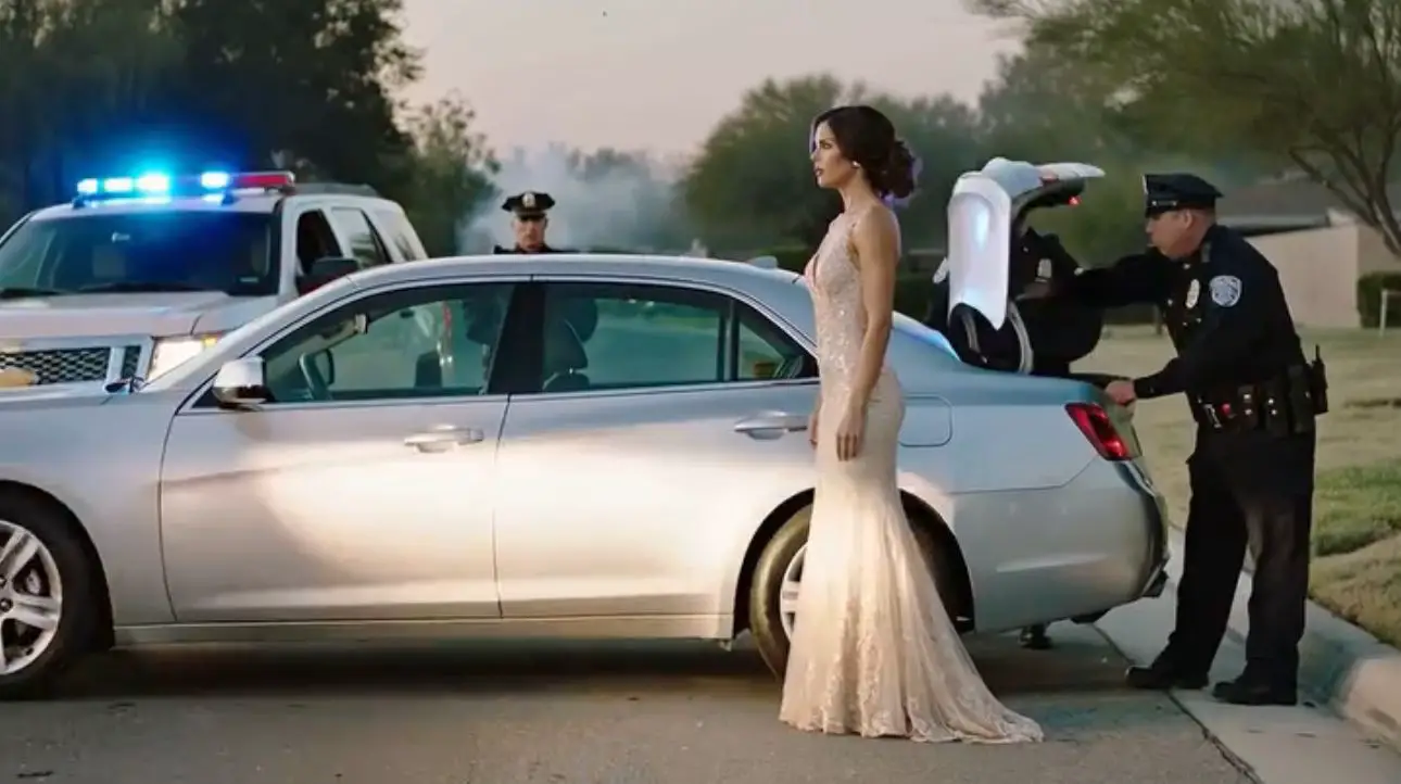 The red and blue lights painted her rearview mirror like a warning she hadn’t earned. Angela Hayes pulled over on a quiet suburban road, her sequined gown catching the streetlight as she reached for her license. She’d done nothing wrong—no speeding, no rolling stops, nothing that justified what was about to unfold.