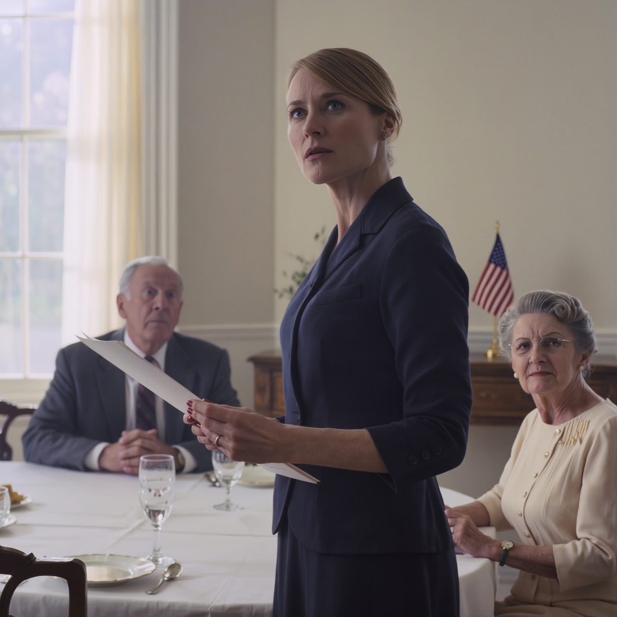 The restaurant my mother chose was pure theater—crystal chandeliers, pressed white tablecloths, soft music drifting from hidden speakers. An American flag sat in a small holder on each table, because of course it did.