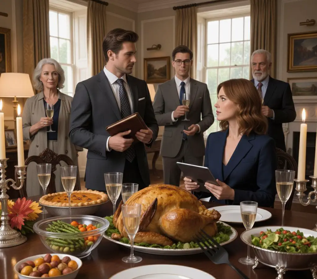 When Thanksgiving arrived, the dining room was packed—uncles I barely knew, aunts with too much gossip, cousins I hadn’t seen in years. Everyone was there, bathed in chandelier light reflecting off polished silverware.